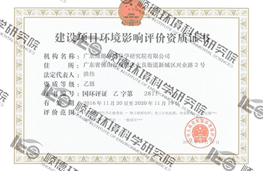 • 廣東省建設項目工程環境監理能力評價證書